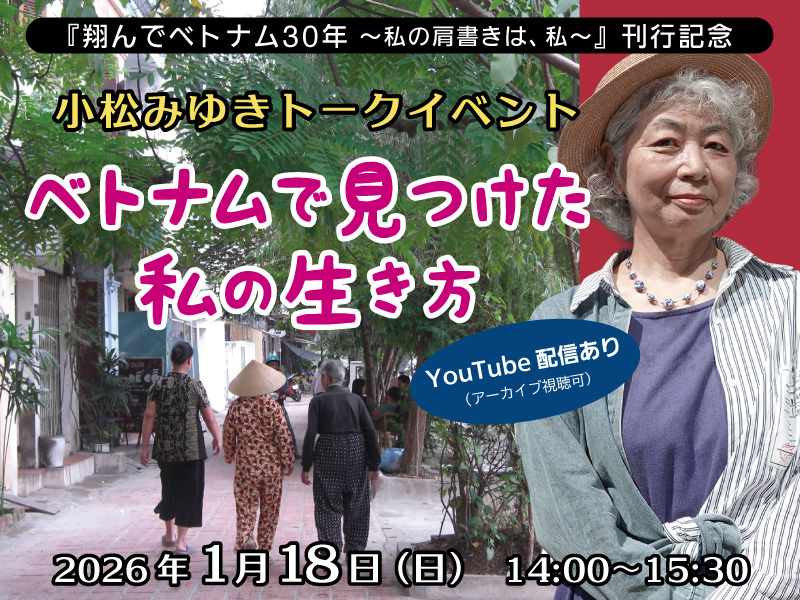 昨年10月15日に刊行となった『翔んでベトナム30年 〜私の肩書きは、私〜』の著者、小松みゆき氏に、本書のポイントを深掘りしながら、書ききれなかったエピソードや裏話などをお話いただくトークイベントを開催します。